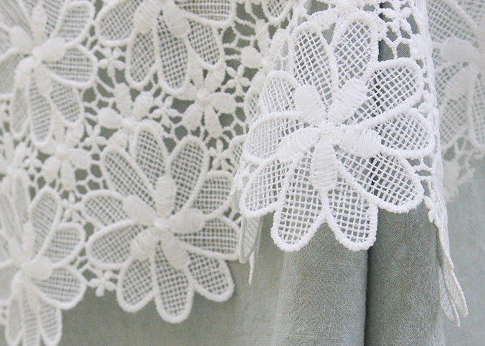 O tecido de renda tingido com poliéster é um leite líquido desnatado, proteína de leite desidratada obtida, com amaciante, feito de suspensão de leite e, em seguida, através do processo de fiação úmida e processamento científico, fiando em fibra de proteína de leite e, em seguida, fiando Feito de fio de bordado de seda de leite e, em seguida, tecidos bordados feitos pelo processo de bordado computadorizado.