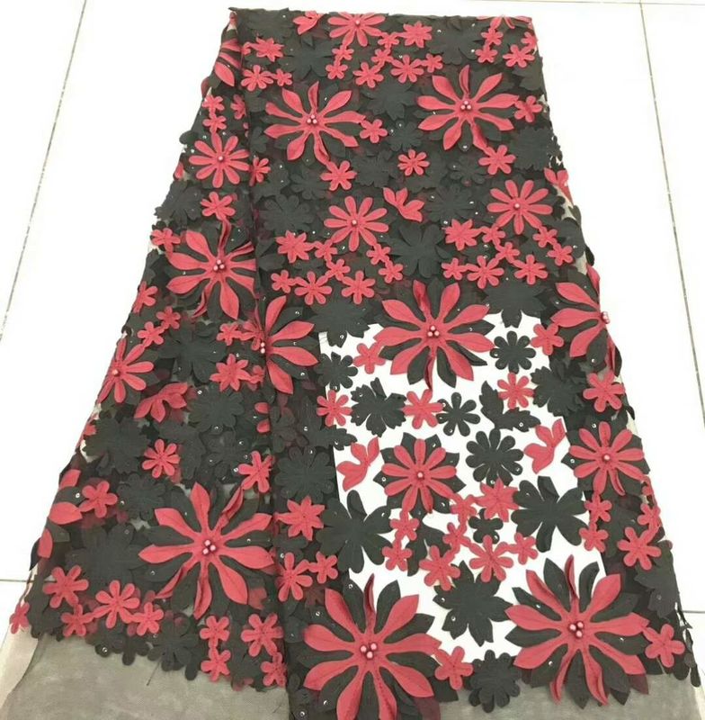 Tecido de renda de malha bordada com flores em 3D, lenço de seda, tulle de renda com contas, para exposição de vestidos é popular em todo o mundo mais de 30 países