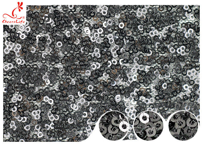 ☺Especificações do tecido de malha de lantejoulas pretas bordadas brilhantes: