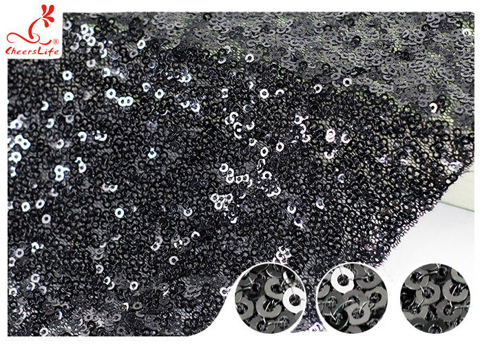 Tecido de malha de lantejoulas pretas bordadas brilhantes para vestidos de festa e noite verifique 5-7 vezes antes de embalar 100% de inspeção